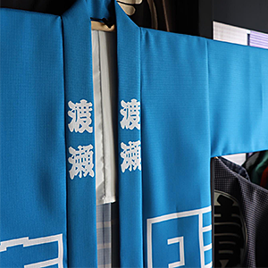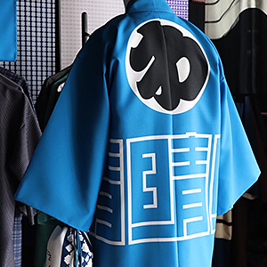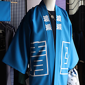 【化繊 ブッチャー半纏】ご家族でご注文下さいました。濃紺の股引腹掛に映える良い色ですね。ありがとうございます